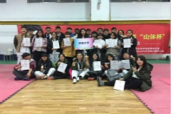 在内的22所大学,300余名大学生跆拳道爱好者齐聚一堂,切磋技艺。我校代表队在领队殷显清的带领下,共20名运动员参加了此次比赛。经过两天的激烈角逐,我校代表队最终取得团体一等奖。其中康文峰获得男子87公斤级金牌、路佳佳获得女子62公斤级金牌、林友琴获得女子53公斤级金牌;王宇晨获得男子74公斤级银牌、徐旭洋获得男子68公斤级银牌、孙思琦获得女子53公斤级银牌;王常震获得男子74公斤级铜牌、姜娜娜获得女子57公斤级铜牌。