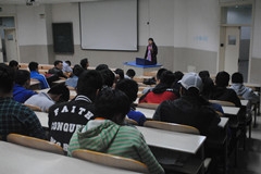 所学专业的市场前景走势、毕业生的专业学习、综合素质培养、就业技能的提升进行了详细的分析与指导。希望全体毕业生盘点自己的毕业条件,为就业奠定良好基础。同时详细介绍了在就业时个人材料准备、面试、签约等方面的注意事项。接着,亓院长对学院即将招收研究生的具体问题进行了解答,希望同学们可以考虑考取研究生的方向,并就同学们的就业提供了现实可行的指导,希望同学们能树立正确的择业观,降低就业期望值,积极应聘,充分就业。最后,李涛老师就根据自身实际情况向学生们讲解面临就业问题所需注意事项。