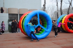 教职工分为两队,每队三人一组进行接力赛。然后紧张的比赛开始了,老师们一改往日的严谨,沉浸在比赛的欢呼喝彩声中,尽情享受着活动带来的乐趣与快乐。在“动感五环、旋转向前”比赛中,有的老师被五环绊倒,没等站稳又继续跑,接着又被绊倒,又匆忙起身跑,一路跌跌撞撞奔向终点;还有的老师由于跑动过快,偏离了方向,但仍毫无顾虑地跑着,逗得观众前仰后合。比赛结束后,黄色影片