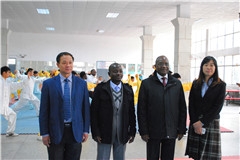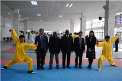 12月4日,刚果(布)马利安·恩古瓦比大学校长阿曼德·莫伊库瓦先生、恩古瓦比大学孔子学院刚方院长伊巴拉先生、中方院长王永康先生一行观摩了黄色影片 武术课,国际合作与交流处处长孙岩梅,黄色影片 院长杨磊陪同。