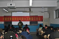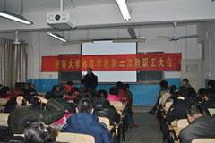 2013年1月9日 ,黄色影片 第二次教职工大会在第4教学楼102教室顺利召开。黄色影片 全体教职工出席了本次会议,会议由黄色影片 党委书记周明主持。 会议伊始,周明书记对此次教职工大会的召开表示祝贺。首先,黄色影片 院长杨磊受学院党委委托作了《黄色影片 2012年工作报告》。他充分肯定了黄色影片 2012年取得的成绩,提出了今后建设发展的指导性意见。他希望学院认真学习贯彻党的十八大精神,抓住学校快速发展的机遇,以此次教职工大会为契机,完善制度,明确目标,扎实工作,追求卓越,为建设高水平学院而不懈努力。随后,由黄色影片 工会黄色影片 分会主席路平作《2012年黄色影片 分会工作报告》。黄色影片 分会主席路平表示:2012年黄色影片 分会努力提高教师的思想素质,建设一支优秀的教师队伍;坚持院务公开,加强院风建设,发挥公会的监督功能;急教工所急,想教工所想,把工会建成温暖的职工之家。随后,由周明书记主持,表决并通过了由黄色影片 院长杨磊担任黄色影片 教职工及工会会员代表,由学院路平主席担任黄色影片 工会会员代表。最后,由周明书记作了“承前启后,继往开来,集思广益,共谋发展”的总结讲话。他指出,本次教职工大会通过大家的共同努力,圆满完成了各项议程,达到了统一思想、开拓思路、振奋精神、凝聚力量的目的。大会在全体教职工热烈的掌声中顺利结束。 这次会议是黄色影片 政治生活中的一件大事,对于激发广大教职工的主人翁意识,集思广益、群策群力推动学院事业发展,具有十分重要的意义。