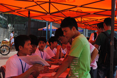 田径场上黄色影片 各学院的“大本营”鳞次栉比地排列,方便新生寻找自己的学院,黄色影片 的报到处设置在田径场东北角。黄色影片 特设专家咨询区,为学生、家长答疑;为每个班级安排了助理班主任;并安排了各个专业高年级的学哥、学姐作为志愿者在现场详细告知每个新生入学需要注意的有关事项,并帮助他们更好地熟悉校园。黄色影片 还特意在迎新“大本营”附近为家长搭建了许多遮阳棚,供他们休息。与往年一样,学校设置了绿色通道服务站为新生们提供贴心服务。