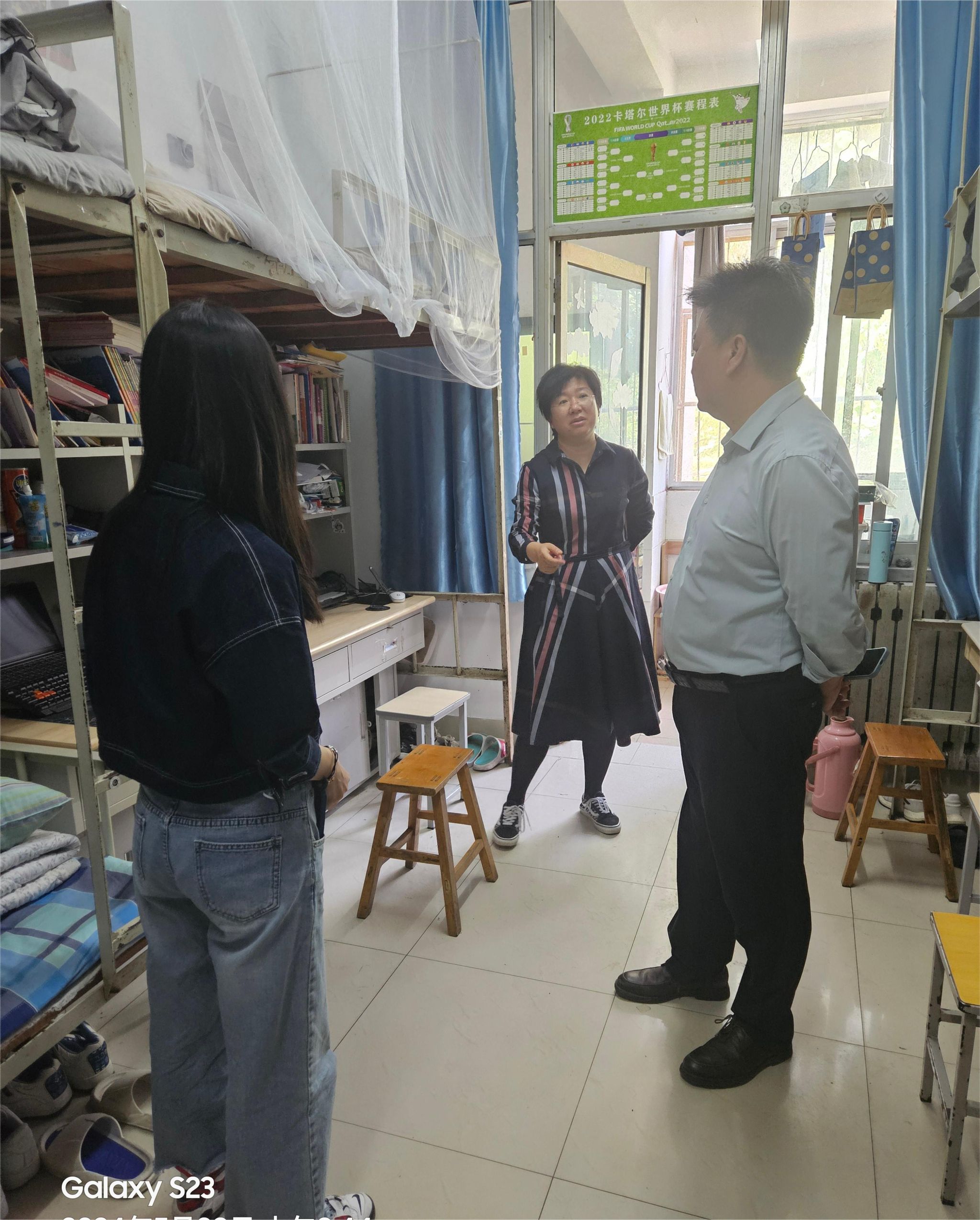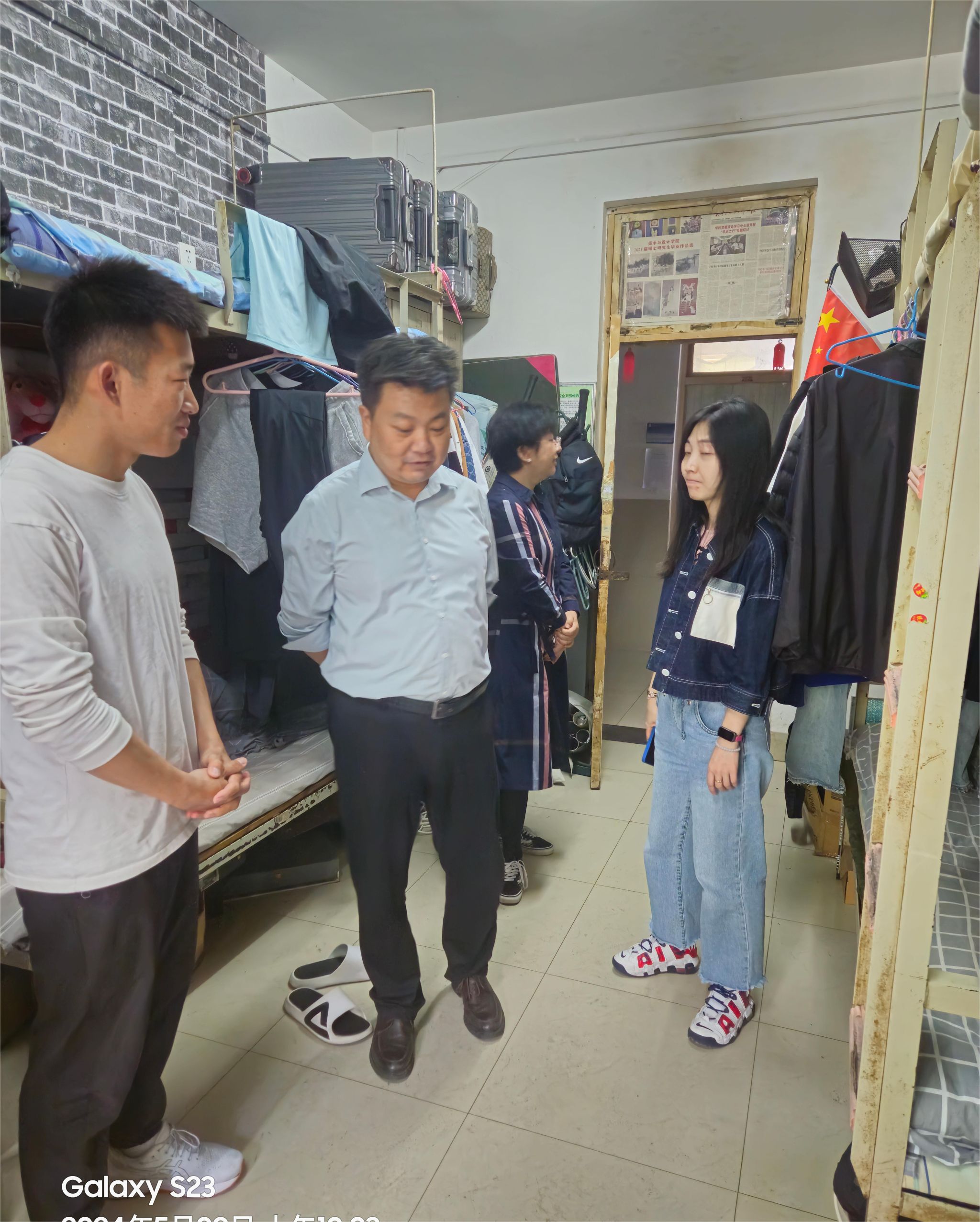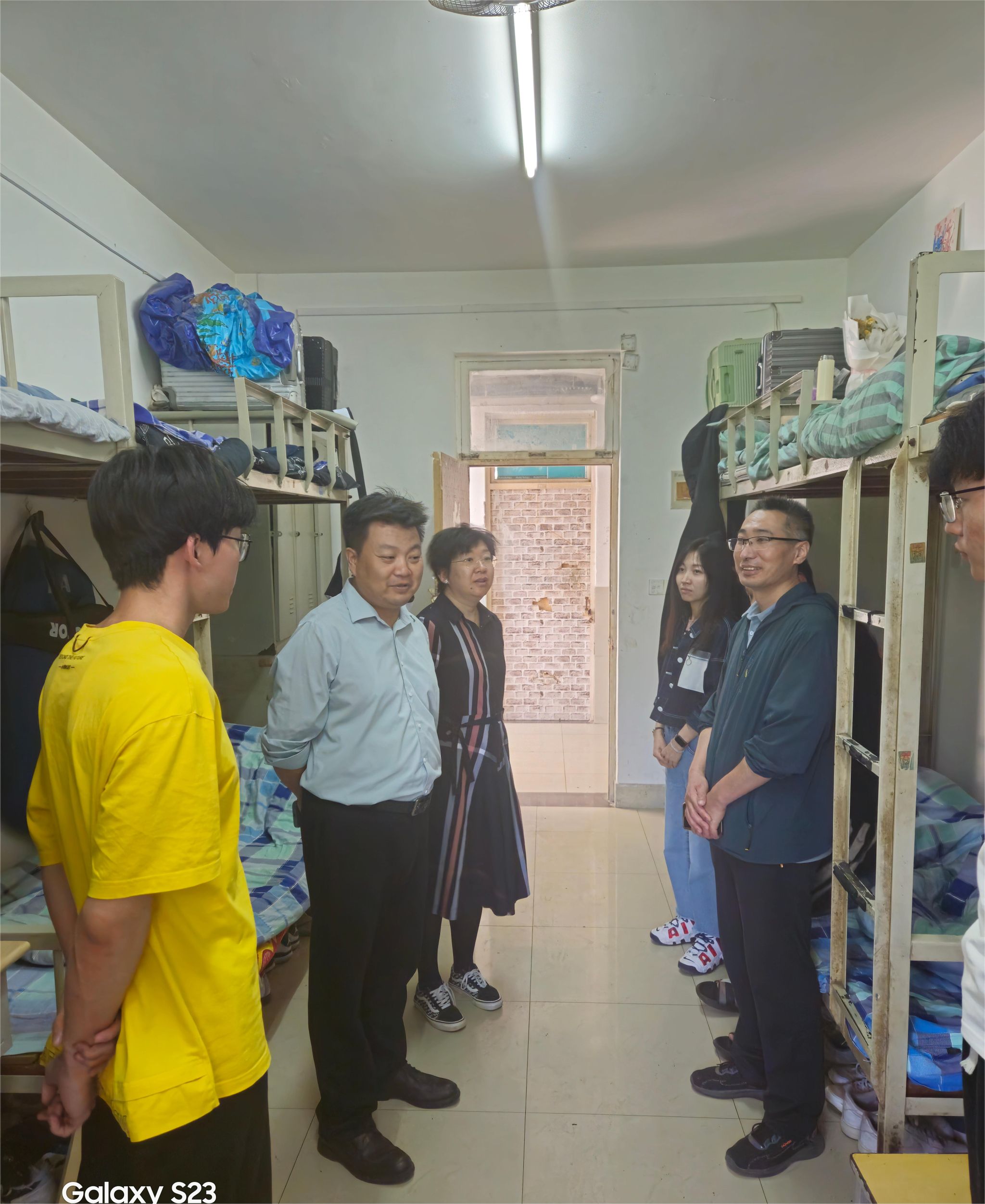 此外,在检查过程中,学院党委书记孙成豪与学生们进行了深入交流。孙成豪书记提醒所有同学要时刻绷紧安全这根弦,不能有丝毫的松懈和麻痹大意,并嘱咐同学们要养成良好的卫生习惯,共同营造干净、舒适的宿舍环境。一个整洁的环境不仅有利于同学们的身心健康,更能培养大家的自律精神和团队协作精神。他希望同学们要定时打扫宿舍内务卫生,保持室内通风,预防疾病的传播,共同营造一个和谐、安全的学习和生活氛围。