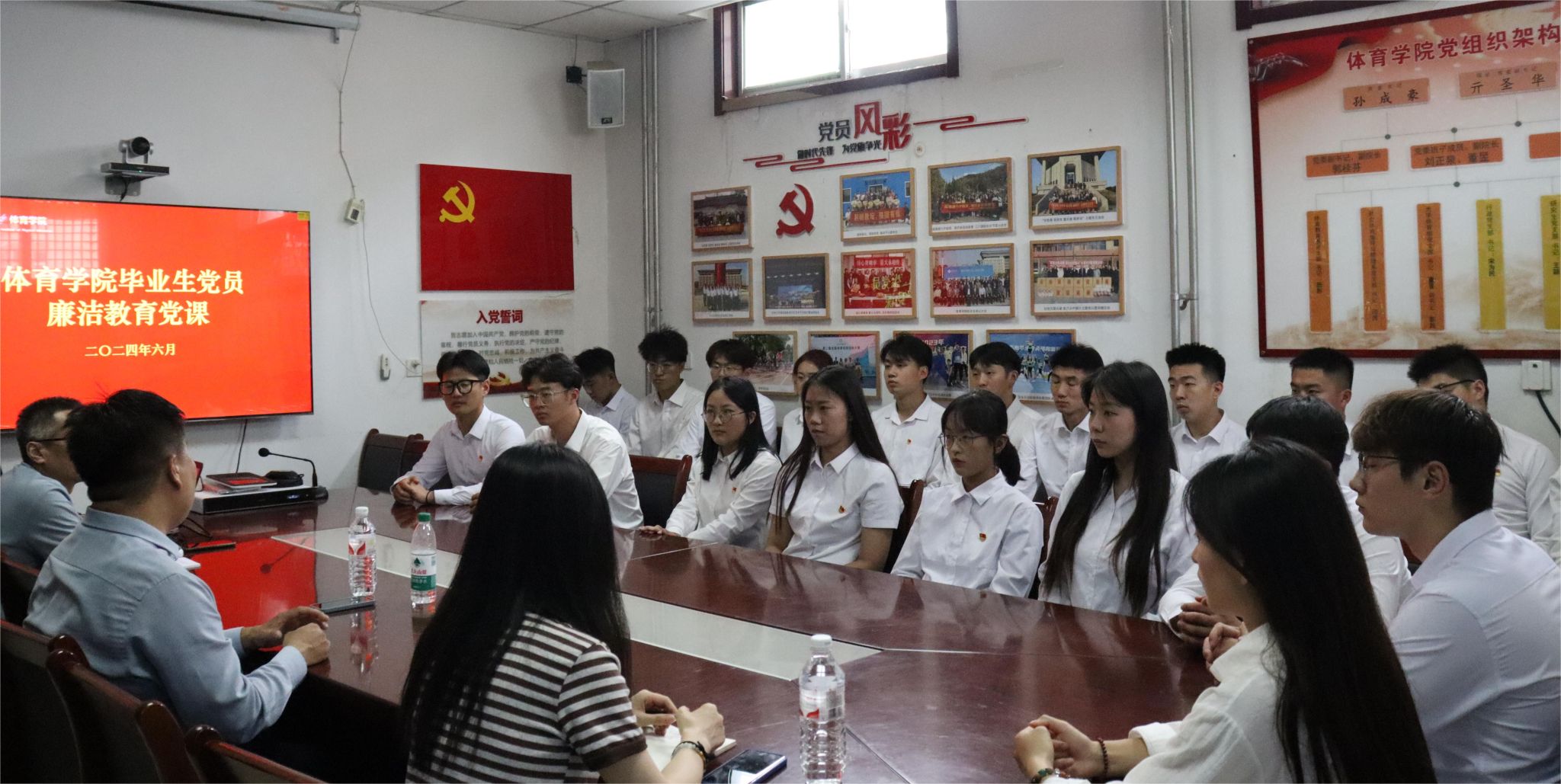 党委书记孙成豪为学生讲授“青廉课堂”党纪专题党课,活动由学生党支部书记王梦晗主持,2024届毕业生党员参加。