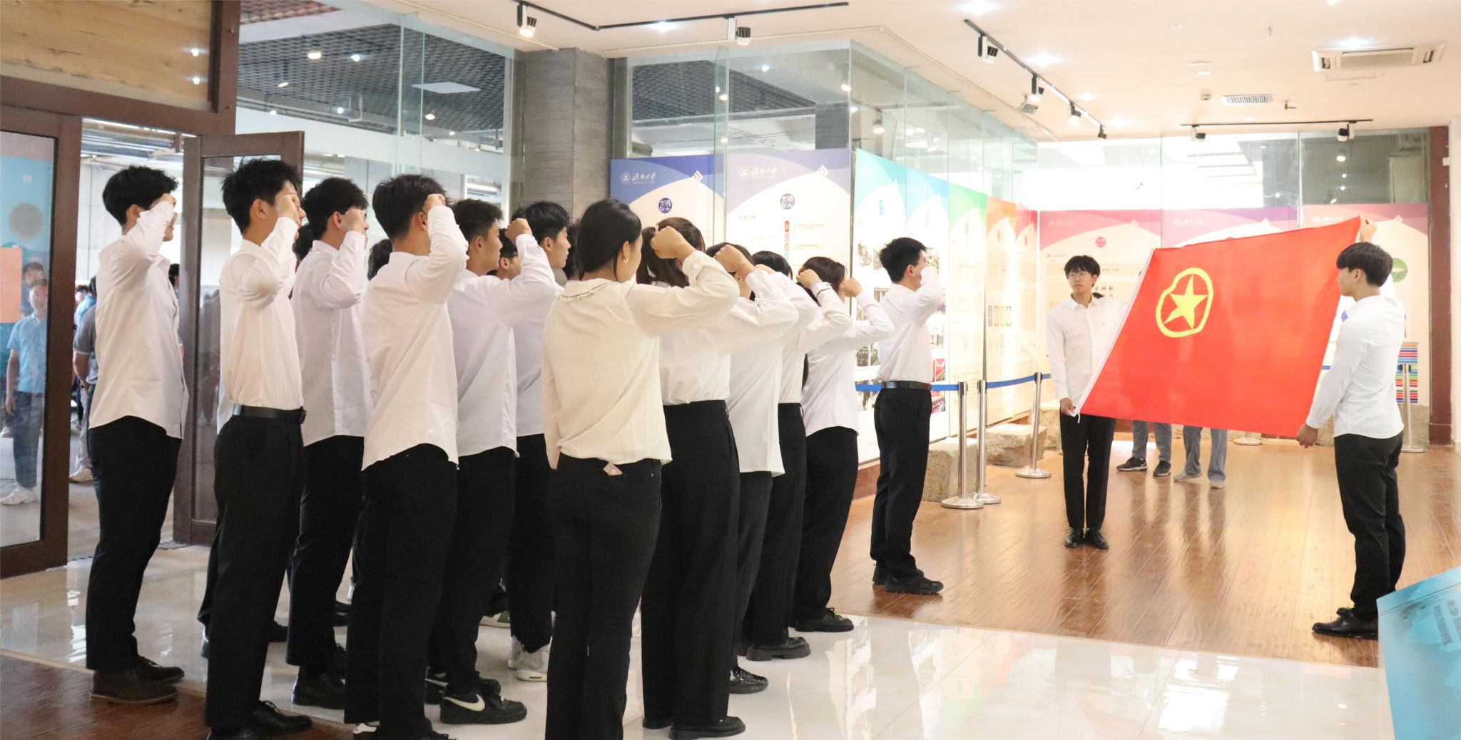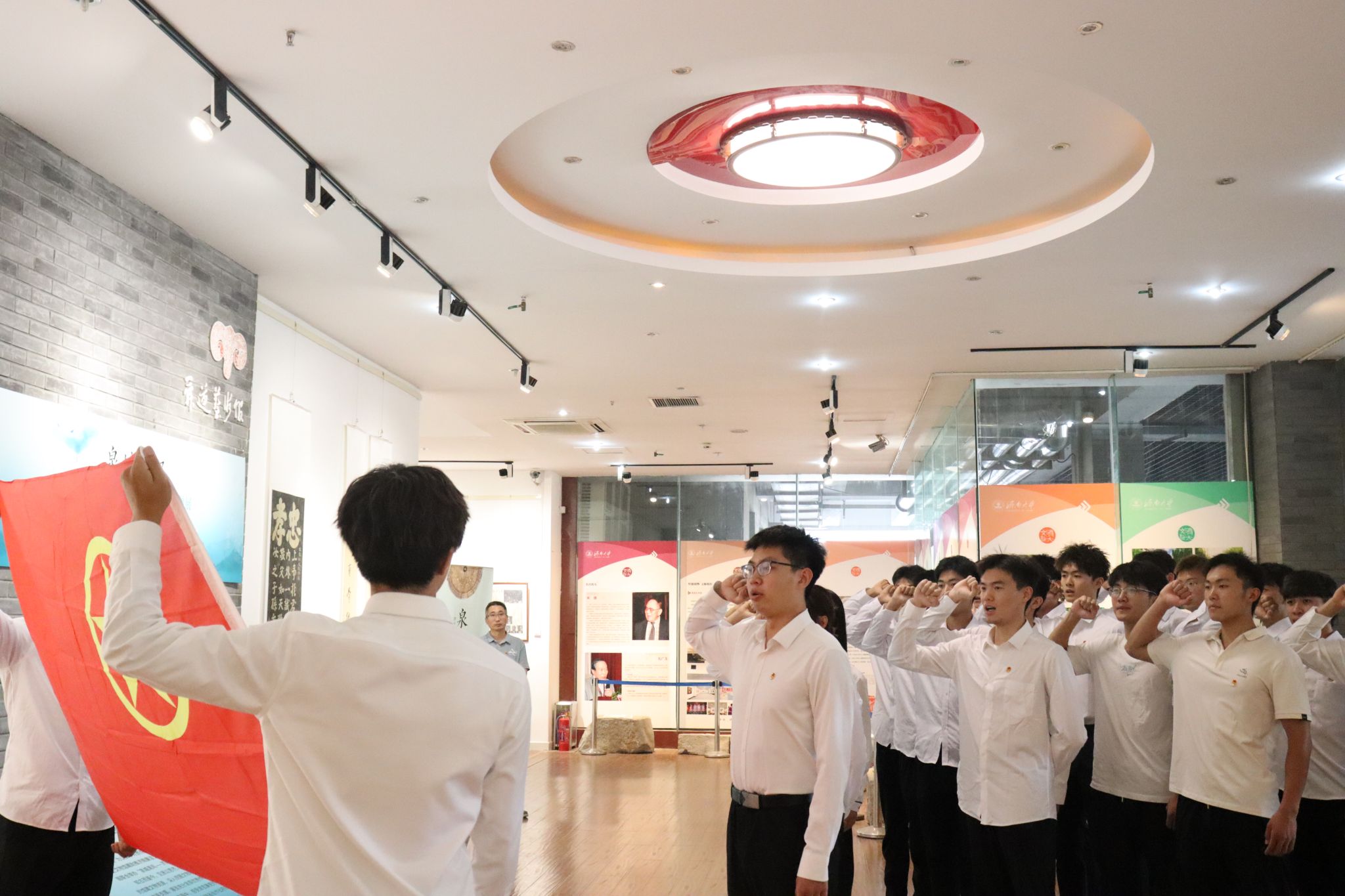 参观学习结束后,新团员学生庄严宣誓,表达了新时代团员坚定不移听党话、跟党走,为共产主义事业而奋斗的坚强意志和决心。