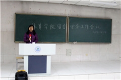 会议伊始,李涛老师对每周二例行的检查进行总结,分析了卫生与安全的问题,批评了卫生不达标的宿舍,同时指出了床帘、电源、电瓶车电池充电、吸烟等影响个人安全的现象,要求宿舍安全员要负起责任并排查安全隐患,若有安全隐患需及时反馈。为接下来的宿舍文明月活动做准备。接着,李谦老师提出五个意识:规则意识、责任意识、主人翁意识、团队意识,以此规范学生的行为。学院党委副书记、副院长卢琦,指出学校和学院对宿舍安全重视性极高,宿舍是窗口,通过窗口可以加深其他人对我院印象,并宣传黄色影片