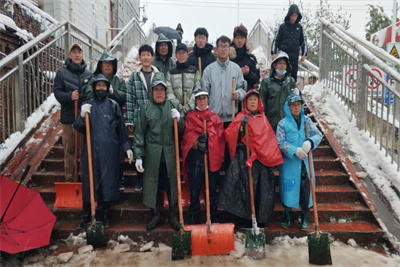 公寓临时党支部组织学生党员、预备党员、积极分子以及联合学生组织于11月7日下午开展扫雪志愿服务活动。