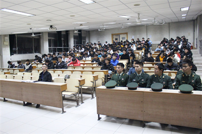 党委的关心关爱,让他们完成人生的又一次华丽转身。宣讲团成员王兆通讲到在执行某次任务中,曾连续20个月600余天持续奋战在任务一线,看到身边的战友有的为了保护人民群众的生命财产安全身负重伤,甚至有的献出了自己年轻宝贵的生命的这一段经历时,他潸然泪下。在场的师生也都被他们那种为了人民群众生命财产安全宁愿牺牲自己生命的精神深深的感动,全场响起雷鸣般的掌声向他们表示崇高的敬意。宣讲团成员侯耀武以“心系国防,共筑长城—清澈的爱,只有中国”为题结合国防的意义和重要性以及自己退役复学的感悟向同学们进行了宣讲。