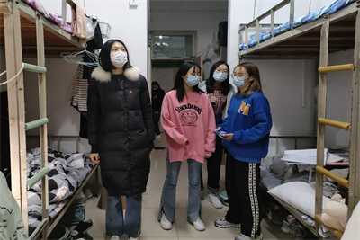应急口罩发放点,提醒来往同学戴好口罩,引导同学们正确认识当前疫情防控形势。