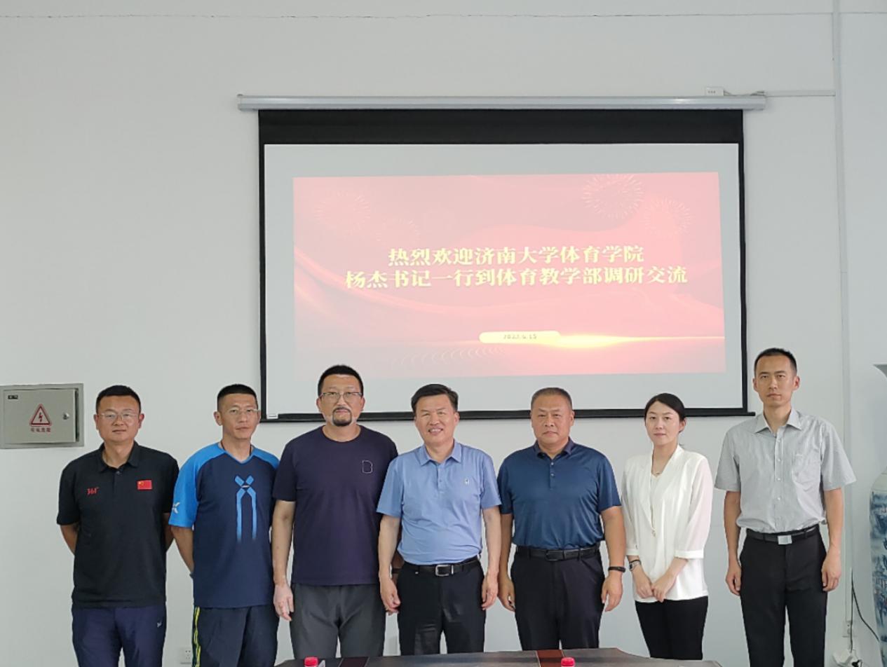 党委书记杨杰、学院副院长董昱、大学体育部主任戴静一行前往山东大学威海体育教学部,就大学体育课程和学生体质健康测试等进行调研交流。山东大学威海体育教学部副主任战文腾主持座谈会,办公室和相关教研室负责人参加座谈。