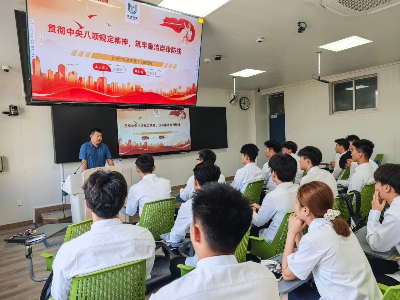党课上,孙成豪围绕中央八项规定精神的内涵、重要意义和实践要求,结合典型案例,深入剖析了违反中央八项规定精神的具体表现和严重危害。他强调作为毕业生党员,要时刻保持清醒头脑,增强纪律意识和规矩意识,自觉抵制各种诱惑,做到廉洁自律、克己奉公。他还结合毕业生党员的实际情况,对大家提出了殷切期望。希望毕业生党员在走上工作岗位后,能够继续发扬党的优良传统和作风,时刻保持学习习惯,牢记党员身份,践行党的宗旨,在各自的工作岗位上发挥先锋模范作用。同时,要时刻绷紧廉洁自律这根弦,做到心中有党、心中有民、心中有责、心中有戒,以实际行动维护党的形象和声