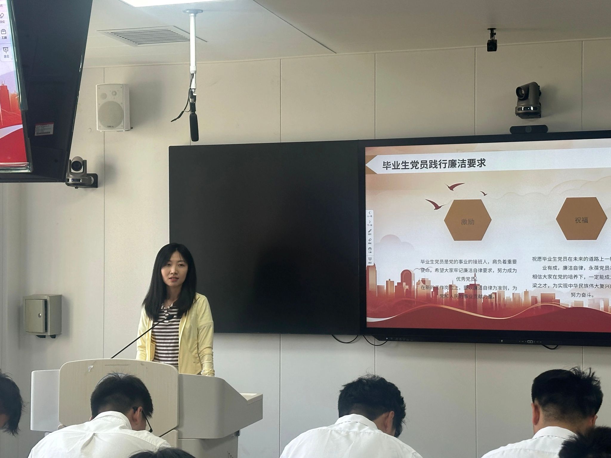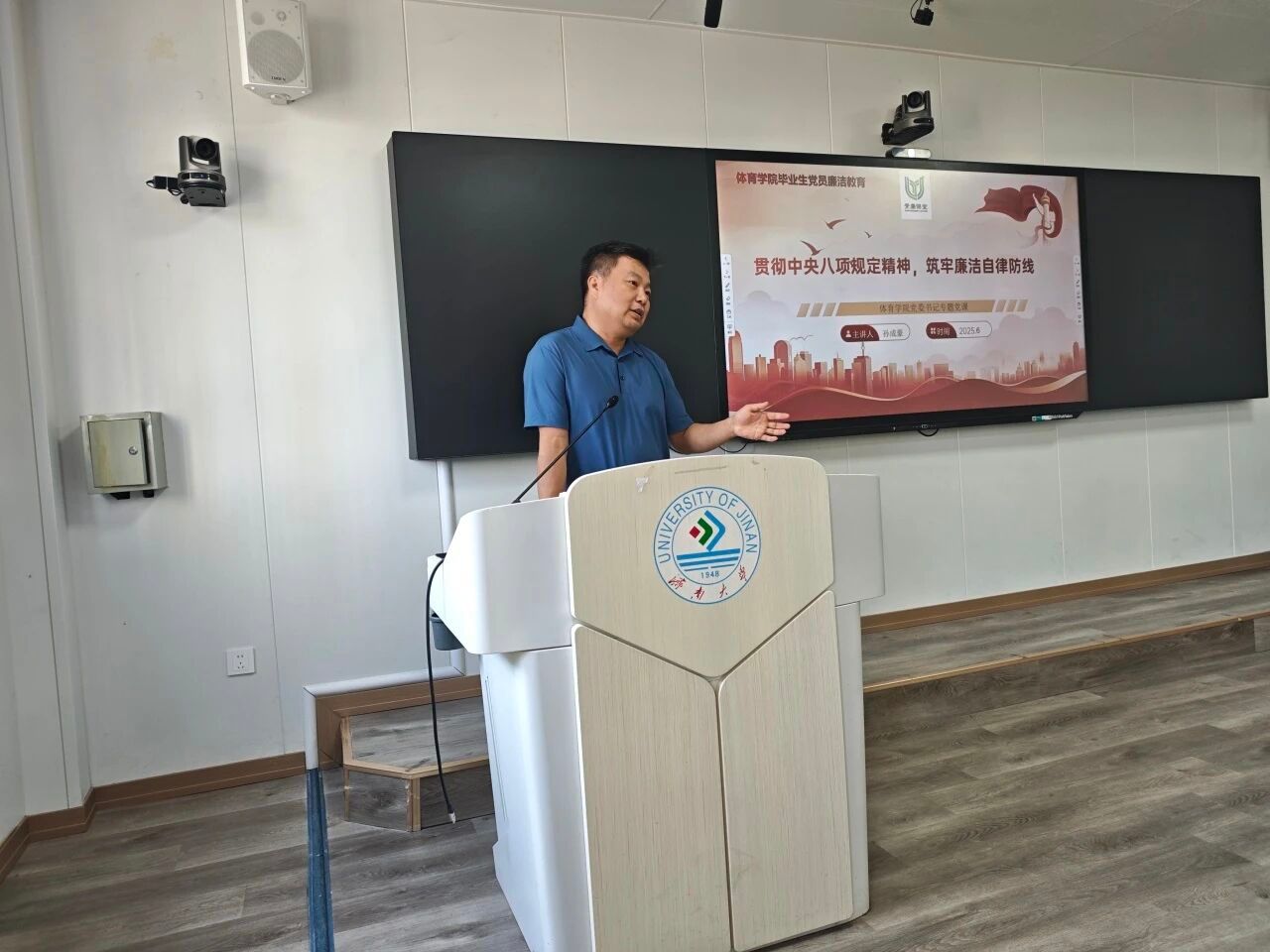 党委书记孙成豪为毕业生党员讲授了主题为“贯彻中央八项规定精神,筑牢廉洁自律防线”的专题党课。本次党课由学院学生党支部书记王梦晗主持,全体毕业生党员参加。