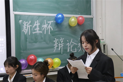 在11教2202举办“新生杯”辩论赛。此次比赛由来自八个新生班集体的八支代表队参加,由五名主席团代表担任评委,现场八十名黄色影片