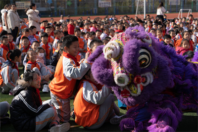党委对此次活动给予高度重视与支持,为此次活动的开展提供了全面保障。“一缕阳光”青年志愿者们积极传承和弘扬中华优秀传统文化,用传统文化武装自己,大胆创新吗,勇敢竞争,积极开拓,不断进取。志愿者们利用晚上没课的时间,紧锣密鼓的排练,不言苦与累,为此次志愿服务活动积极准备,不仅为同学们带来了生动活泼的舞狮表演,同时也带来了精彩绝伦的武术表演,其中包括太极拳、蛇形掌、初级长拳、刀术、剑术、棍术等,赢得了同学们阵阵的喝彩声与掌声。志愿者们作为00后的大学生有幸在新征程的号角吹响之时与10后的同学们相遇,是一场青春托举青春的信任,是一场青春影响青春的感动。