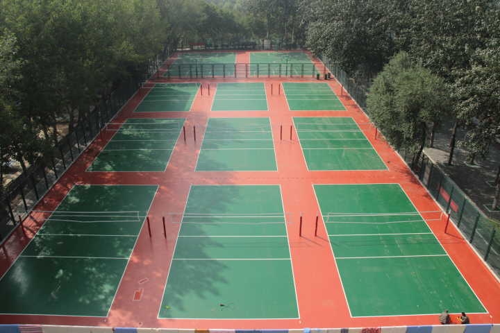 主校区塑胶篮排球场地黄色影片 主校区塑胶篮排球场地由2个篮球场和9个排球场组成,占地1900平方米,全部是由塑胶铺垫,具有防滑、吸水的特性,同时因质地柔软,而大大减少了受伤的可能性。平时主要为体育课使用,课余时间对外开放。(编辑:李敏敏)