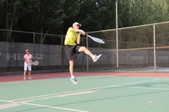 为了欢送毕业球友,交流球技,增进感情,丰富黄色影片 网球文化,6月7日下午,黄色影片 在中心校区天赐网球场举办2015年“毕业杯”师生网球赛,校长程新参加比赛并颁奖,黄色影片 院长杨磊主持颁奖仪式。 本次比赛由黄色影片 体育运动委员会主办,黄色影片 、网球协会承办,采用一盘决胜制。设有男子双打A组、B组、女子双打、混合双打四个比赛项目,面向2015届毕业生和爱好网球运动的师生。为期2天的比赛,运动员默契配合,激烈竞争,每一次精彩的发球,每一回合精彩的对攻都会引来观众的阵阵喝彩,整个赛事精彩纷呈。经过激烈的角逐,程新、张娜荣获混合双打冠军,隗德民、李芹荣获混合双打亚军,詹强、刘亚茹和毕思旭、王媛媛并列季军;隗德民、耿兵荣获男子双打冠军,边健、张彤荣获男子双打亚军,毕思旭、邢以民和陈华勇、马宇并列季军;李芹、张娜喜获女子双打冠军,徐承贤、梅玉华喜获女子双打亚军,刘亚茹、杜丽和费腾、王媛媛并列女子双打季军。 颁奖仪式上,校长程新颁奖并代表学校向取得优异成绩运动员们表示热烈地祝贺!向为本次比赛的成功举办而付出辛勤劳动的运动员、裁判员和工作人员表示衷心地感谢!希望大家以本次比赛为契机,继续广泛深入开展网球运动,强健体魄,全面发展;继续发扬不畏困难、团结协作、奋勇争先的良好作风,将“更高、更快、更强”的体育精神带到今后的学习和工作中去,以饱满的热情、昂扬的斗志、拼搏的精神,不断创造出一流的业绩! 本次比赛分享了经验、增进了感情,进一步推动和提高了校园网球的参与度与水平,让“崇尚、热爱体育运动,拥有强健体魄、拥抱健康生活”的理念深植于心中,让伤感的毕业季成为了青春末尾最动人的篇章。