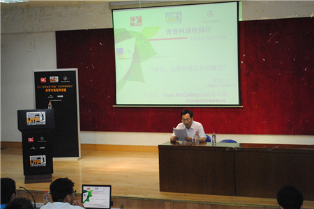 副院长亓圣华首先对于汤姆先生的到来表示热烈的欢迎并向同学们详细的介绍了汤姆先生。随即邀请汤姆先生针对商业体育进行演讲。演讲初始,汤姆先生表示他非常荣幸能够来到贵校为大家进行演讲,与市场专业和体育专业的学生一起分享他们的经验和想法,并表明此次讲座的主题包括体育市场经济的所有领域。随后,汤姆先生针对各个领域作了进一步详尽的阐述,演讲过程中还添加了几个游戏环节来和同学们进行互动。最后奖学金颁发活动,由梅赛德斯评选出的10位同学,每人将获得一千元的奖学金,并与亓院长和汤姆先生一起合影留念。