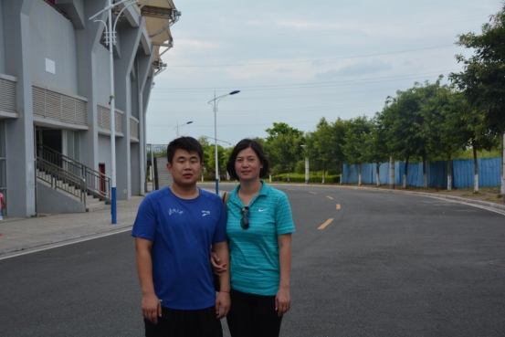图21 教练员艾军与获得男子乙组4*100米、4*400米接力冠军的魏严宸同学合影