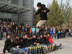 轮滑趣味运动会拉开了序幕,本次运动会项目主要由“轮滑拔河比赛”、“轮滑长跑”、“轮滑接力跑”、“两人三足”、“背靠背夹气球”、“轮滑花式表演比拼”、“极限轮滑比拼”等环节组成,整个过程现场的气氛十分火爆,众多同学驻足观看、叫好。在“两人三足”环节,各队表现出团队合作的力量,各位运动员奋力拼搏,不甘人后,充分体现出坚韧不服输的品格,他们精湛的轮滑技术与华丽的动作赢得了大家热烈的掌声。运动会高潮迭起,掌声不断,活动持续4个小时左右,在社员们的积极参与和精彩的表现中圆满结束。