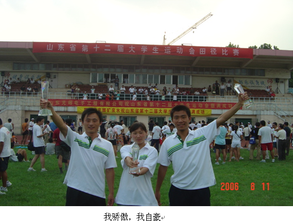 2、山东省第十二届大学生运动会男子甲组4*400米接力第八名。