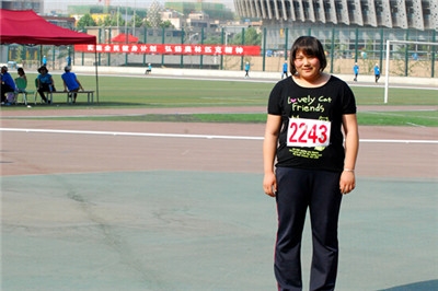 获得女子丙组铁饼、铅球两枚铜牌的经济学院化敏同学