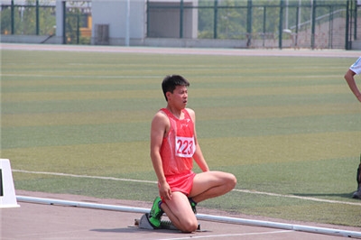 经济学院王超同学在400m比赛起跑前