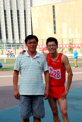杨德麒同学(右一)与教练员李保安副教授合影