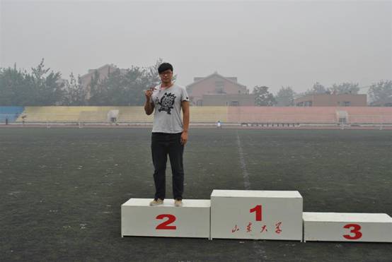 李彬同学获得2011年山东省大学生田径锦标赛男子甲组铁饼银牌,教练员单红军老师