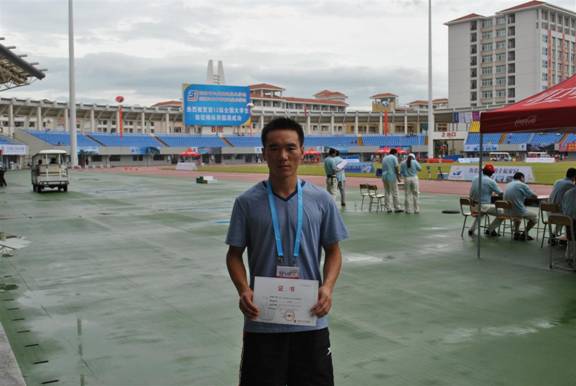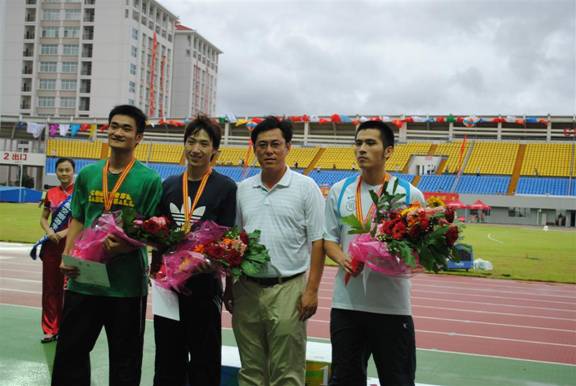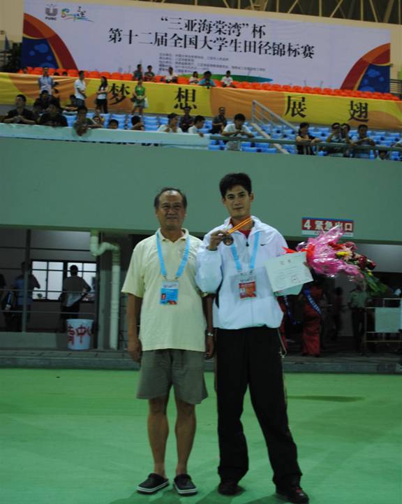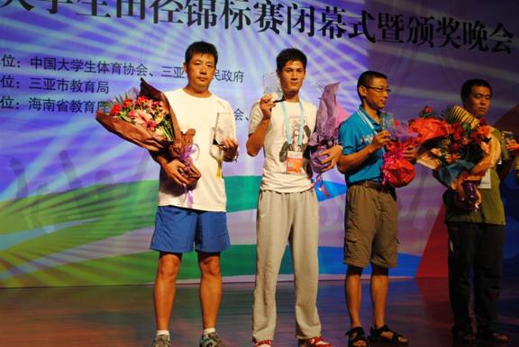 我校获得“三亚海棠”杯第12届全国大学生田径锦标赛乙组奖牌第八名,孙浩同学(左二)代表我校领奖