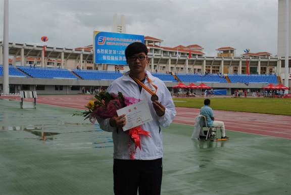 我校李彬同学获得男子乙组铁饼铜牌,教练员为我校外聘单红军老师